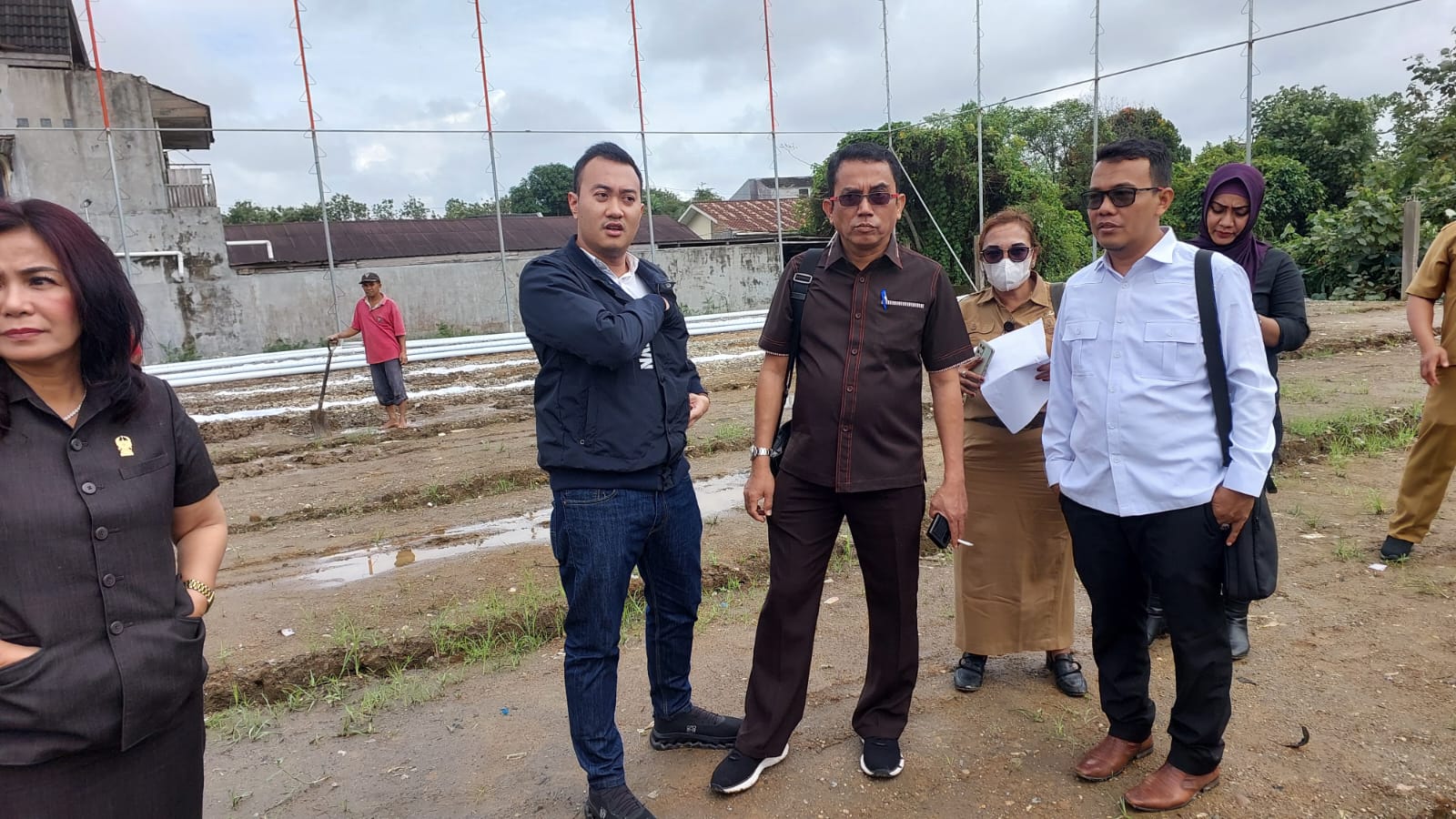 Berikutnya sidak berlanjut ke bangunan di Jl Eka Rasmi peruntukan lapangan mini soccer. Pembangunan lapangan ini berikut bangunan fasilitas lainnya tidak memiliki PBG.