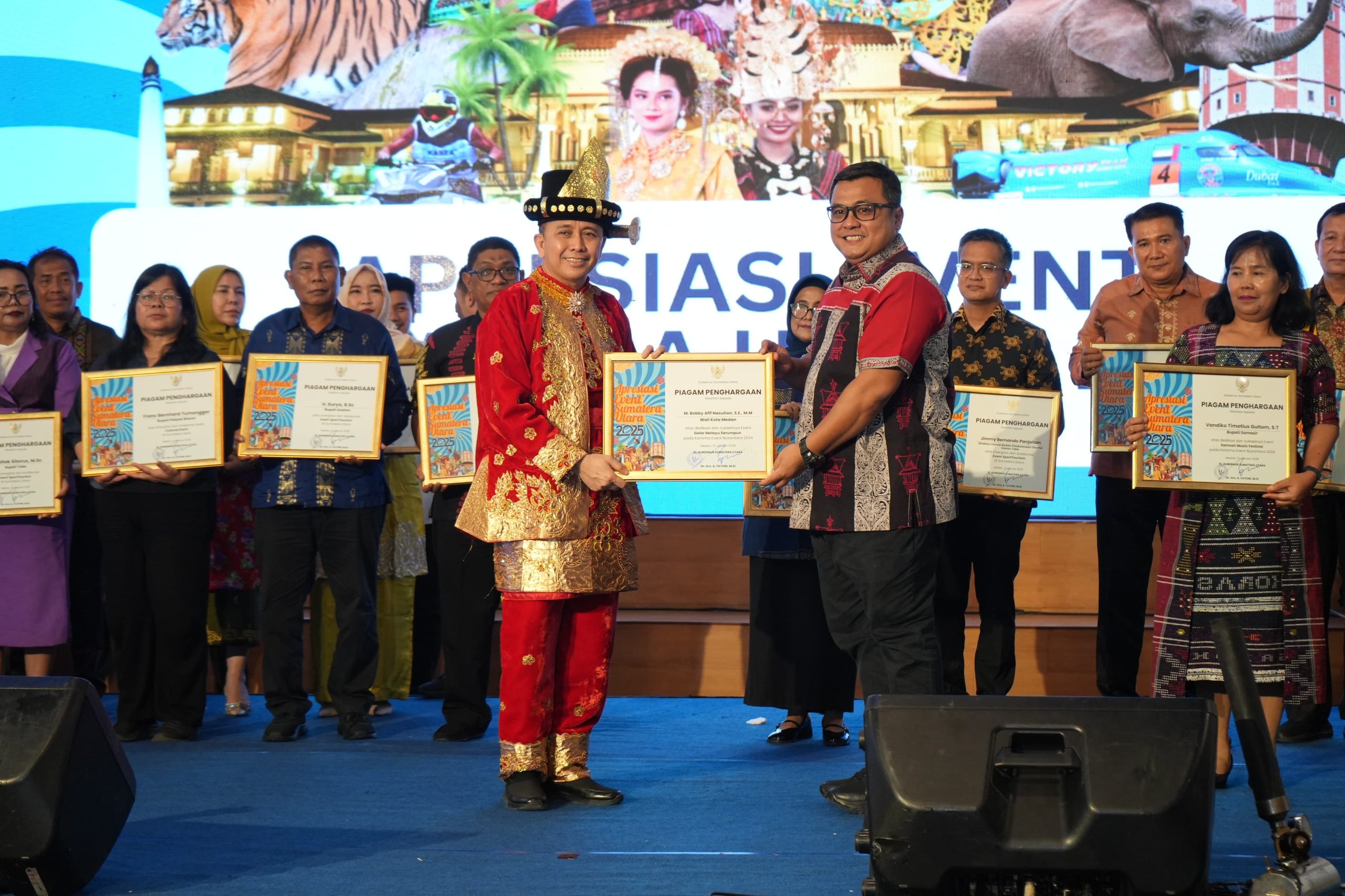 Penghargaan tersebut diserahkan langsung oleh Pj Gubernur Sumut Agus Fatoni kepada Wali Kota Medan Bobby Nasution diwakili Pj Sekda Kota Medan Topan Obaja Putra Ginting dalam acara Launching Calendar of Events (CoE) 2025 Sumatera Utara di Pos Blok Medan Selasa (21/1/2025) malam.