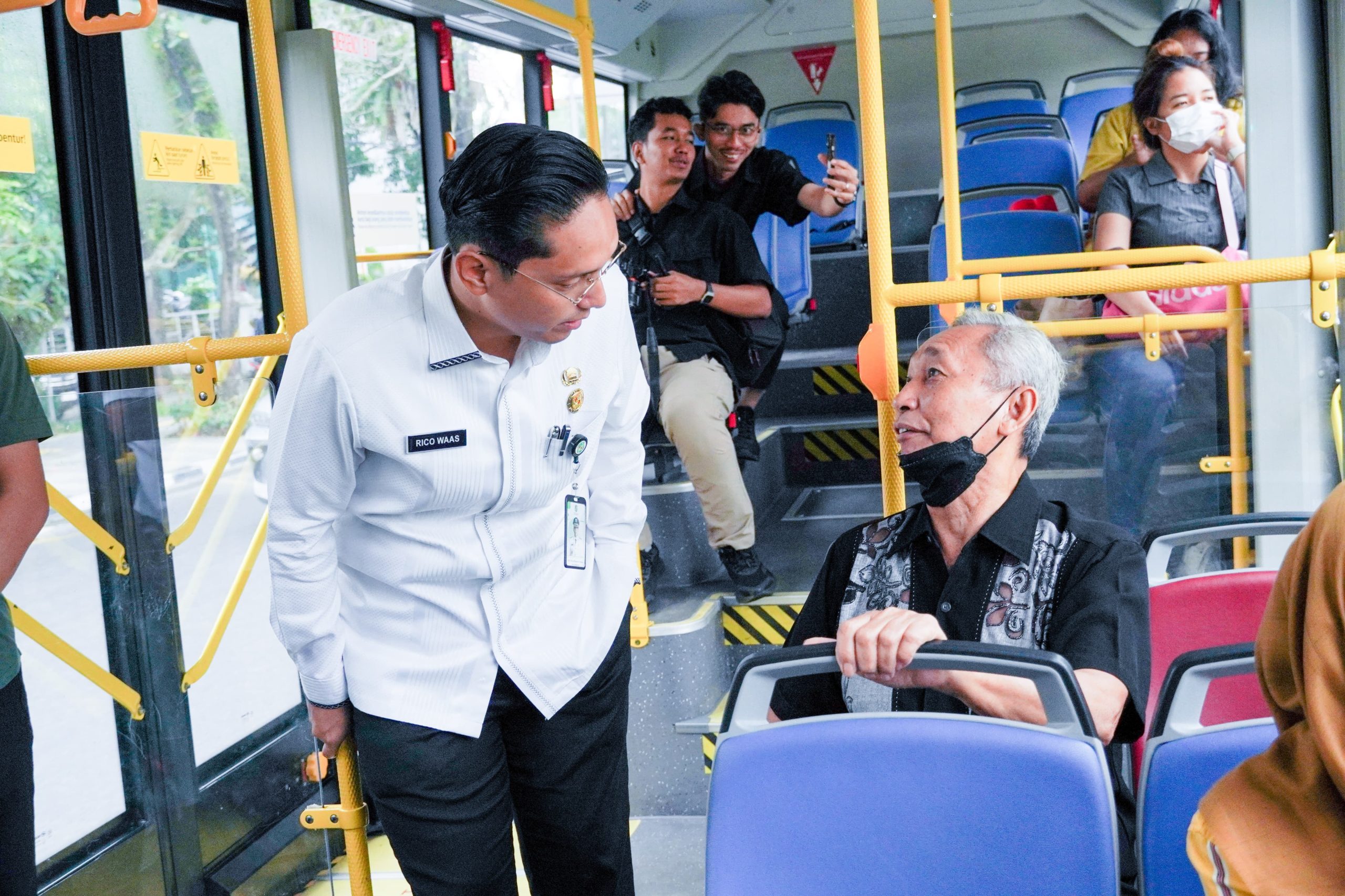 Setelah 10 menit menunggu, bus listrik trayek Perumahan J City Jalan Karya Wisata menuju Lapangan Merdeka akhirnya tiba. Rico Waas dan Agha pun langsung menaiki bus listrik. Selain menyapa dengan ramah, pria kelahiran 5 Juli 1986 ini juga berbincang dengan sejumlah penumpang selama perjalanan menuju Balai Kota Medan.