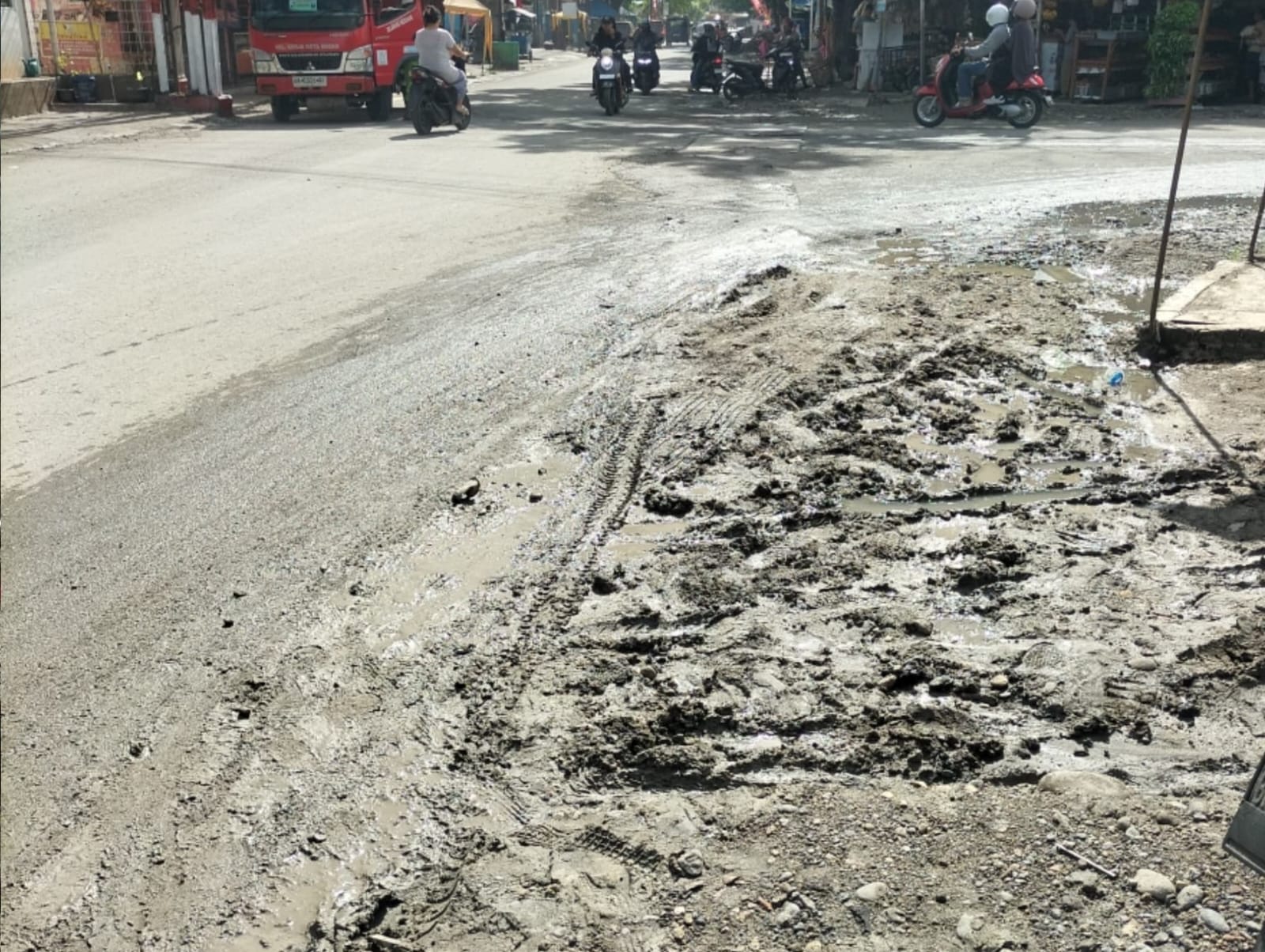 Andi, salah seorang warga juga berharap agar dilakukan pembenahan.” Semalam hujan karena galian itu dibiarkan terjadi penumpukan air dan lumpur.Dan kondisi jalan jadi licin saya pun jadi korban karena terjatuh ,” katanya.