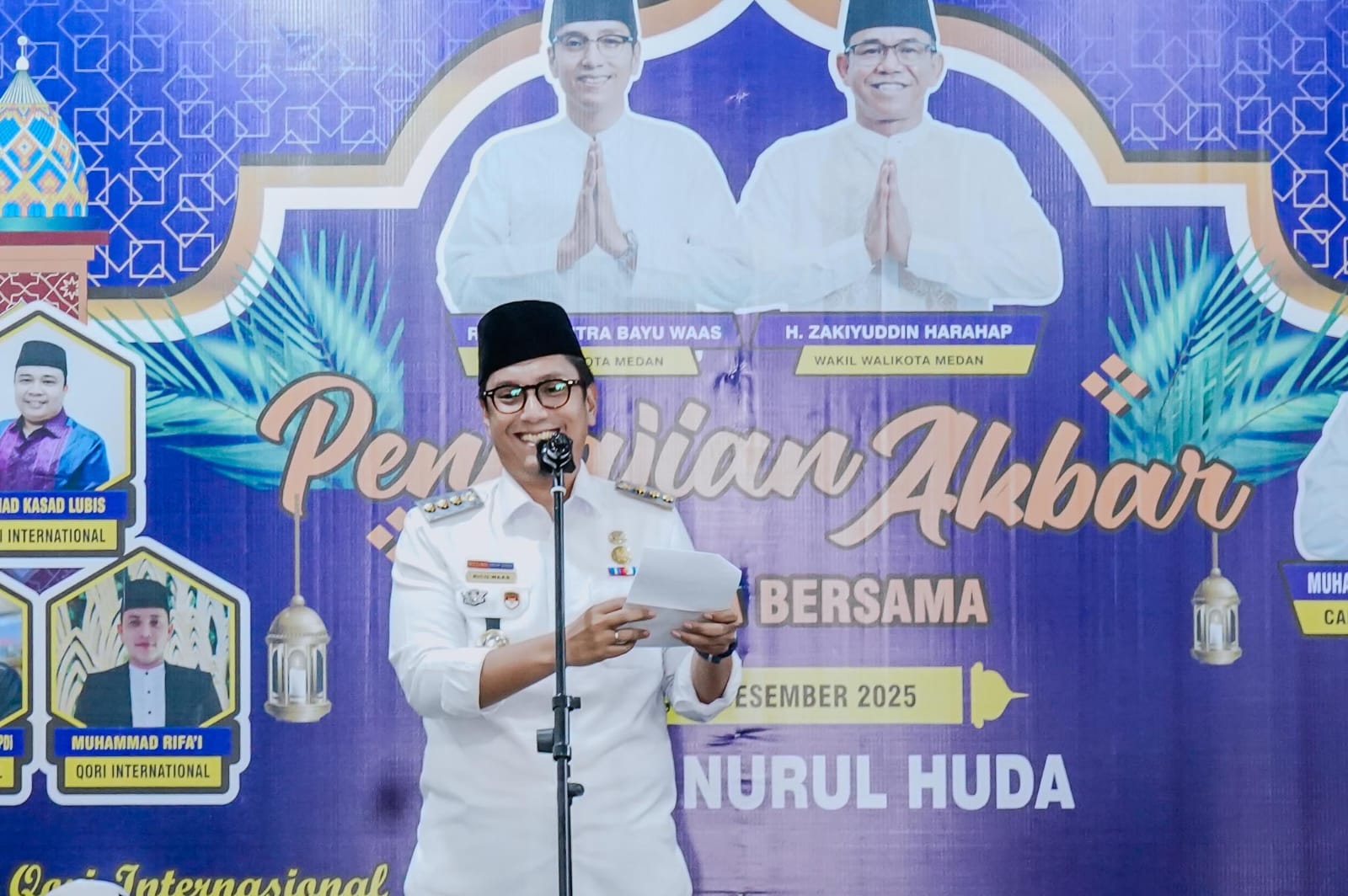 Medan (SiBoge) – Pengajian Akbar dan Doa Bersama di Masjid Nurul Huda, Jalan Bunga Asoka, Medan Selayang, Rabu (10/12/2025) siang, berlangsung khidmat. Wali Kota Medan Rico Tri Putra Bayu Waas bersama jamaah yang memadati masjid itu memanjatkan doa bagi warga yang kehilangan rumah, harta benda, hingga sanak keluarga akibat banjir belum lama ini.